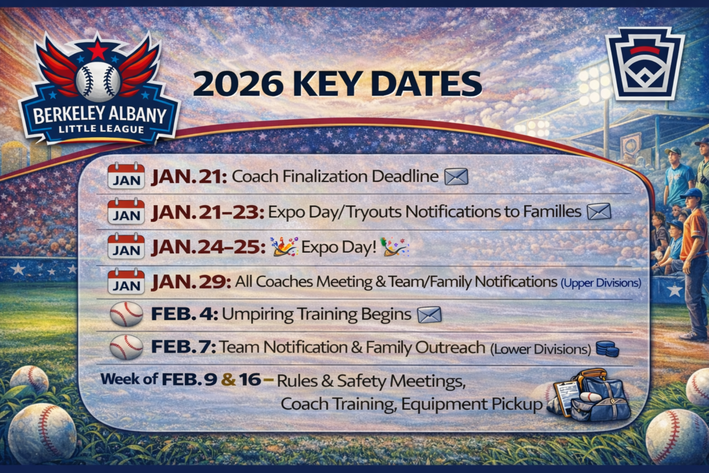 📅 Review the 2026 Key Dates and stay connected as we build toward another great year of baseball.